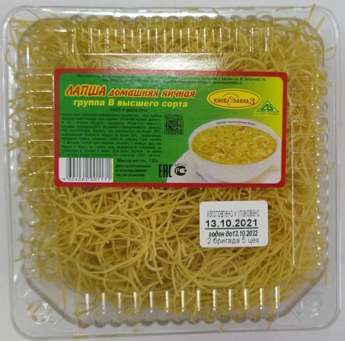 Лапша домашняя яичная, 130 гр. (Казанский хлебозавод №3)