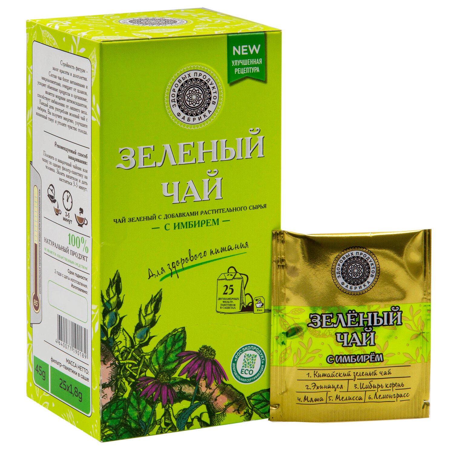 56 активных компоненты цветов, ягод, трав, специй, корений, экстрактов и витаминизированных натуральных добавок.