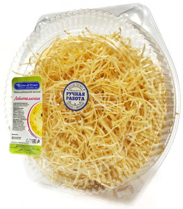 Традиционный татарский продукт, приготовленный по рецепту прошлых поколений — вручную, из отборных натуральных яиц и муки высшего сорта, без искусственных добавок.