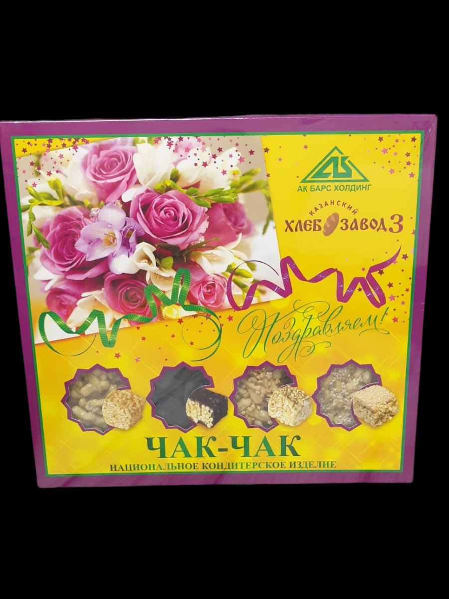 .Набор "Чак чак" от Казанского хлебозавода — восточное лакомство в яркой подарочной упаковке!Этот сладкий набор станет идеальным подарком к любому празднику. В одной коробке собраны четыре вида вкуснейшего чак чака: классический, с кунжутом, с воздушным рисом и глазированный. Каждый вид отличается своим неповторимым вкусом и ароматом, что делает этот продукт настоящим гастрономическим шедевром татарской кухни.Особенности набора:- Классический чак чак — традиционная восточная сладость, приготовленная по старинному рецепту. Нежный и рассыпчатый, он подарит вам истинное удовольствие.- Чак чак с кунжутом — добавление кунжута придает лакомству легкую ореховую нотку и приятный хруст.- Чак чак с воздушным рисом — воздушные рисовые шарики делают эту версию особенно легкой и воздушной.- Глазированный чак чак — покрытый тонкой глазурью, он имеет гладкую поверхность и насыщенный вкус.Все виды чак чака упакованы в яркую коробку весом 460 грамм, что делает их отличным вариантом для подарка или угощения гостей. Этот набор прекрасно подойдет как для домашнего десерта, так и в качестве гостинцев из Казани.Почему стоит выбрать именно этот набор?- Качество. Продукт изготовлен Казанским хлебозаводом, известным своими традициями и высоким качеством продукции.- Разнообразие вкусов. Четыре вида чак чака позволят каждому найти что-то по душе.- Прекрасный подарок. Яркая подарочная упаковка делает этот набор идеальным выбором для любого праздника.- Традиционный рецепт. Все виды чак чака готовятся по традиционным рецептам татарской кухни.Не упустите возможность попробовать и подарить своим близким настоящее восточное лакомство!